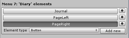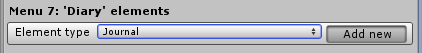 We'll have to create Menu Elements for the diary's text box and two buttons - let's start with the text box. Choose an Element type of Journal and click Add new.