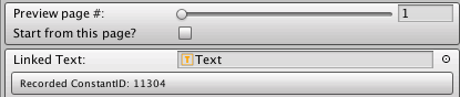 Now drag the Text UI object (again, the prefab instance) into the Journal's Linked Text field. If you cannot access it (e.g. if it is too far down the child stack), then use the scene-based instance, and Apply the changes up to the prefab afterwards. When done correctly, a Recorded ConstantID line will appear beneath:
