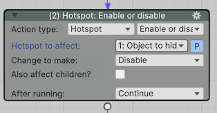 Thirdly, create a Hotspot: Enable or disable Action, and set the Change to make to Disable.
