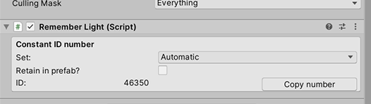 The component will automatically provide the UI to manage the Constant ID number assigned to the GameObject it's attached to. Note, however, that you will need to write a custom inspector if you want to add additional fields or controls to it. This is because there is already an Editor included for the base class, ConstantID. A custom Editor can therefore be written by deriving one from ConstantIDEditor.