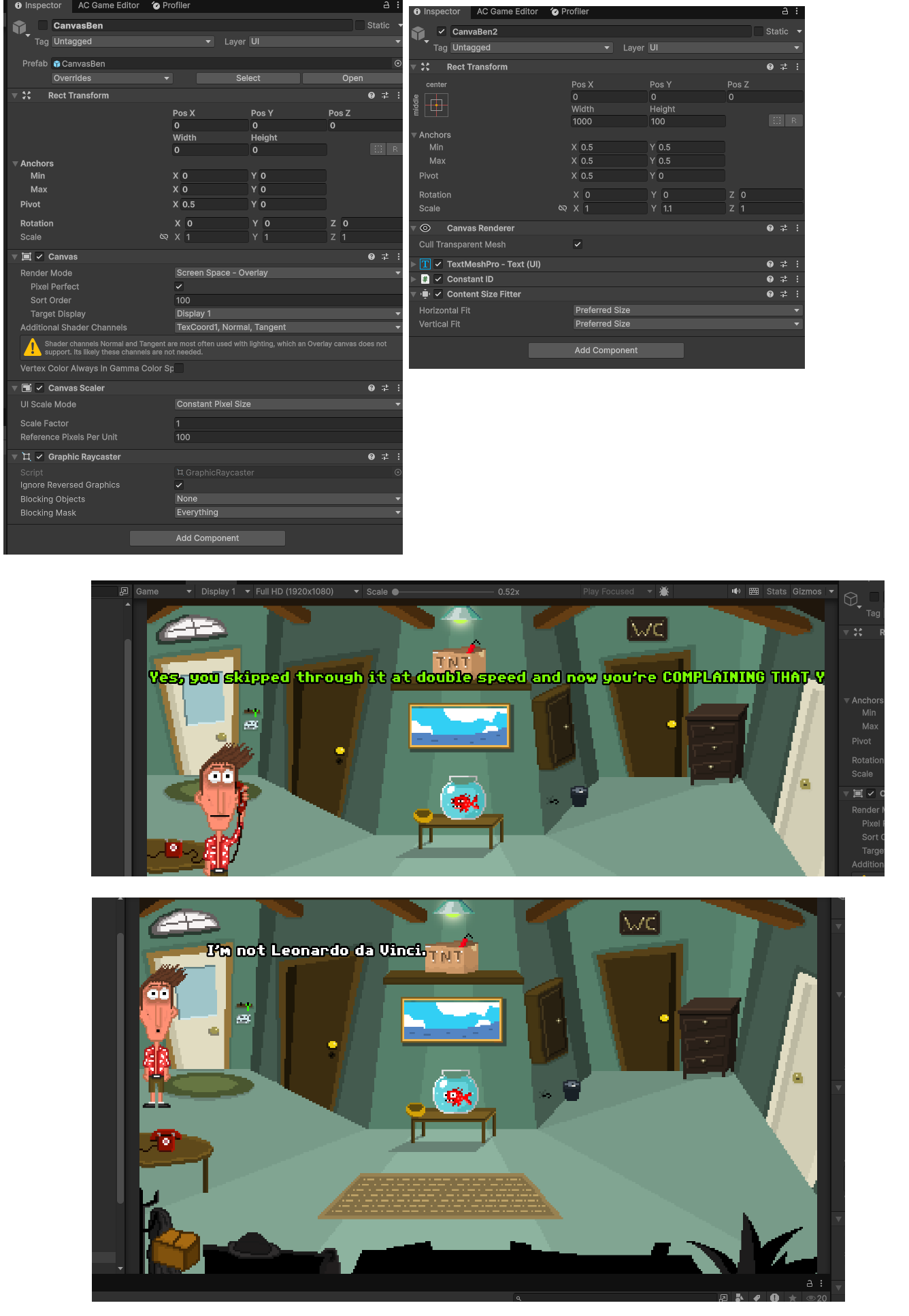 • Hey Chris, thanks for the answer. My issue is that when I set Preferred Size (even with a Min Width in the Layout Element), longer sentences go outside the screen (see the picture with the yellow font above), even if “Always fit within screen” is ticked in AC.