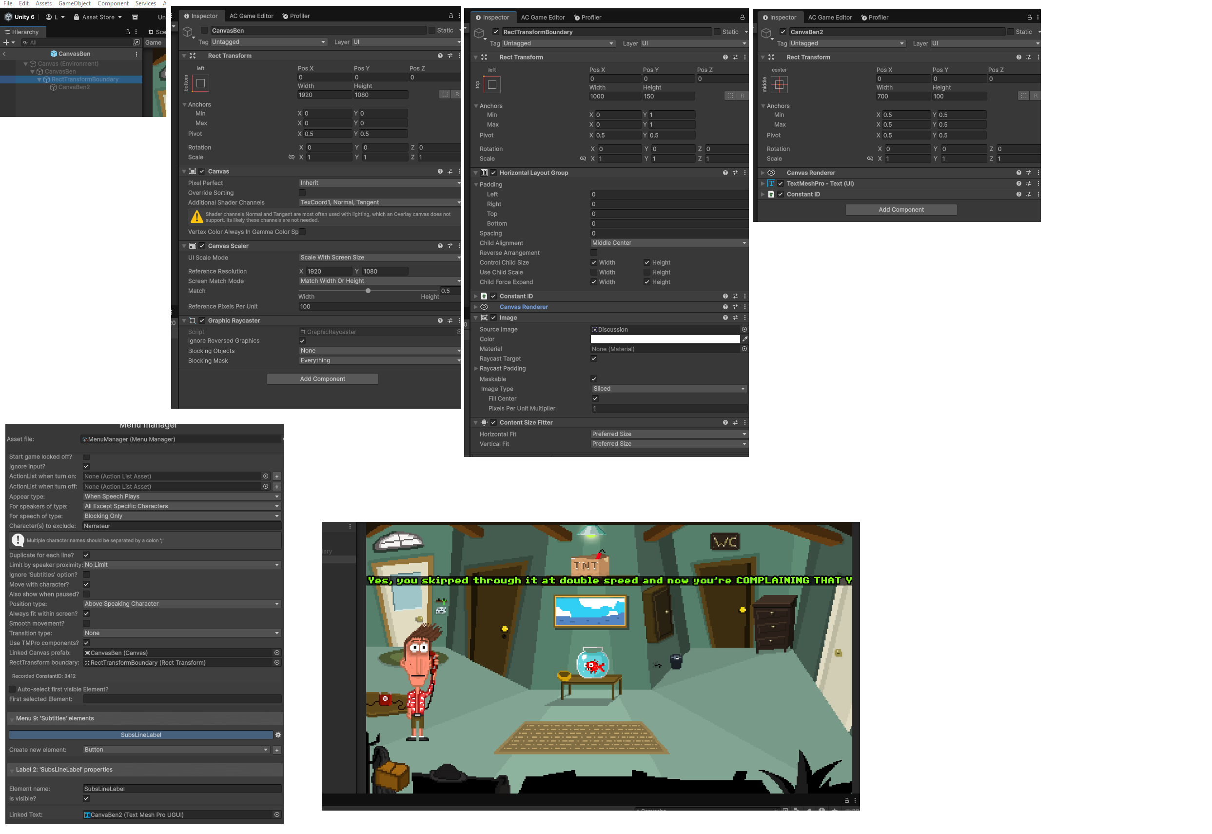 If you PM me the Menu Manager and CanvasBen prefab, I will take a look.