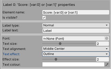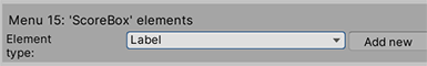 Now we'll create a label to actually display the score. Under the ScoreBox elements heading, choose the Element type Label, and click Add new.