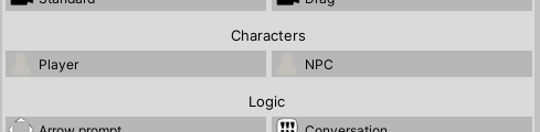To convert this sprite into a character, select it in the Hierarchy, and then - in the Scene Manager - choose either Player or NPC from the Prefabs panel's Characters section: