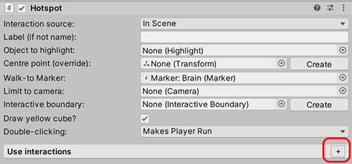 You can now define Interactions in your Hotspot Inspector. Under Use interactions, click the + icon to create a new Interaction: